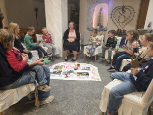 Eine Bunte Schar Kinder traf sich am 13. September in der Krypta. Sie durften etwas über Adam und Eva erfahren und einen eigenhändig dekorierten Baum des Lebens mit nach Hause nehmen