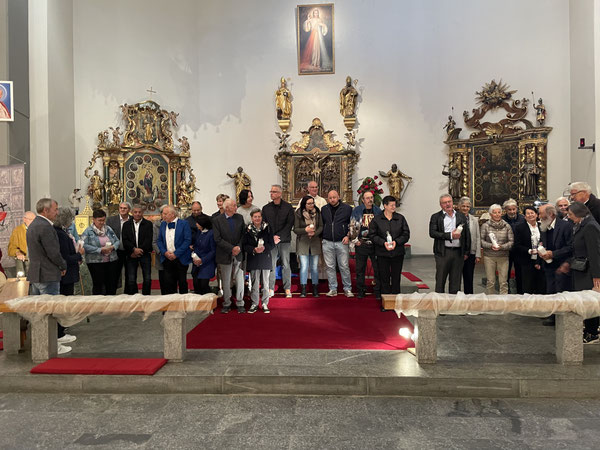 Am 5. Oktober lud die Pfarrei die Ehejubilare zur Sonntagmorgenmesse in die Pfarrkirche in Zaniglas und Herbriggen ein. Die Jubilare freuten sich, im Gotteshaus eine Bestätigung und Ermutigung für ihren gemeinsamen Lebensweg zu erhalten – sowie eine schön verzierte Kerze.