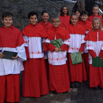 - genauer gesagt sitzen sie nicht nur dort, als "Helfer" im Gottesdienst erfüllen sie auch eine Menge Aufgaben: beispielsweise das Messbuch halten, aus dem der Priester liest, läuten, dem